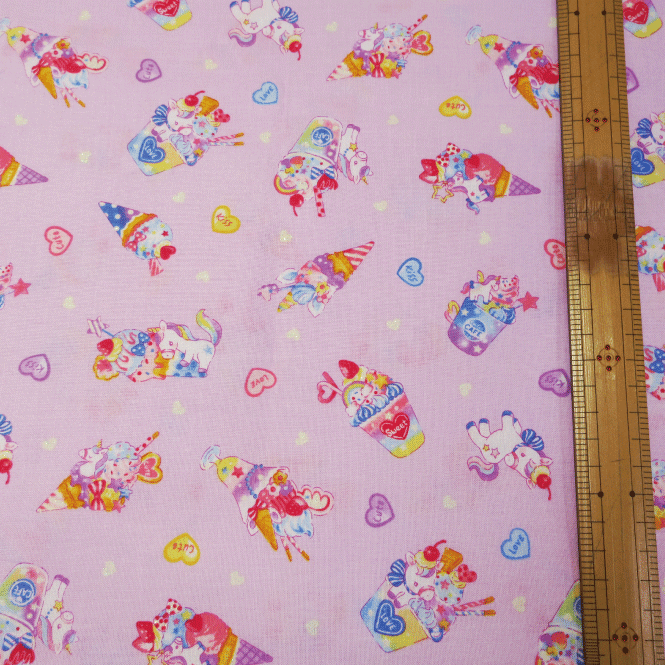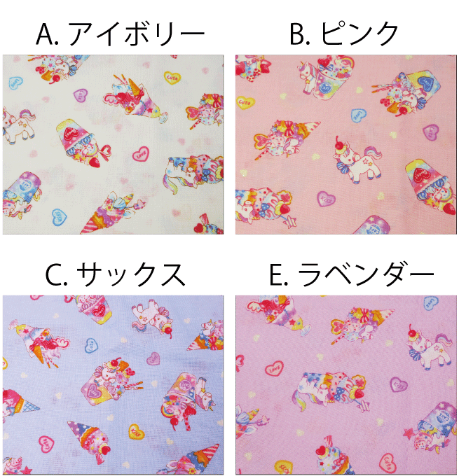 配送方法対応サイズ メール便個数1〜20 宅配便1個〜きらきら光るラメが可愛いユニコーン&スイーツの生地♪